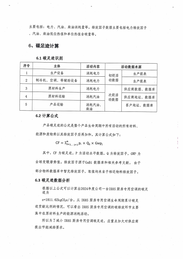 2024年度iK6S廚房專用空調(diào)產(chǎn)品碳足跡報告